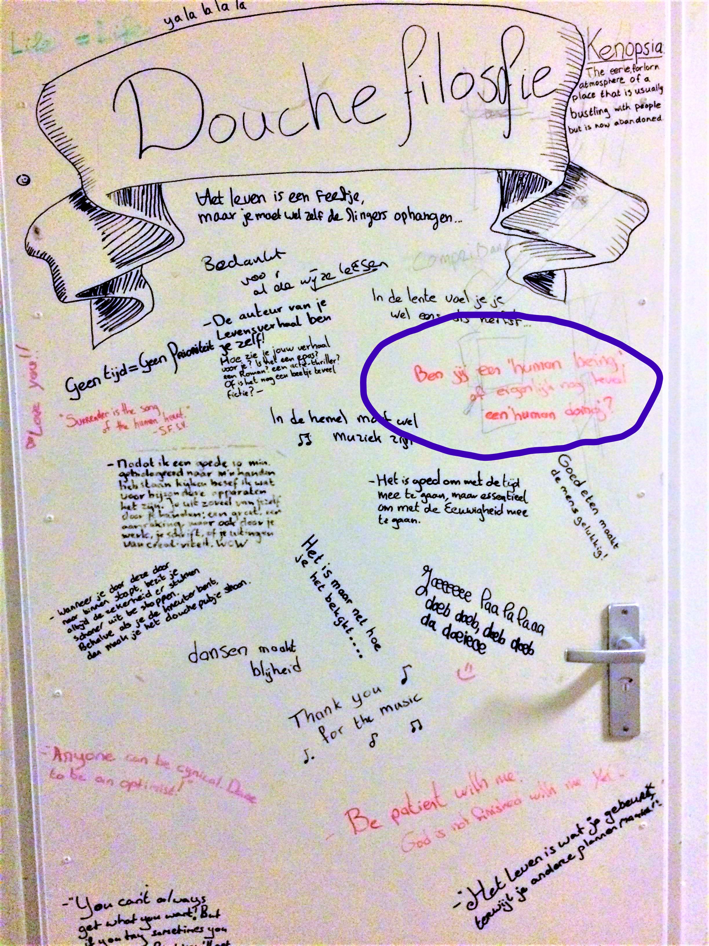 Op de douchedeur van het studentenhuis waar ik woon, staan quotes geschreven. Één van de zinnetjes vind ik best wel een goeie: “are you a human being, or are you human doing?”. Ik denk dat ik soms best wel een human-doing ben: ik doe de dingen graag efficiënt en goed. Ik werk ook graag met to-do lijstjes enzo
